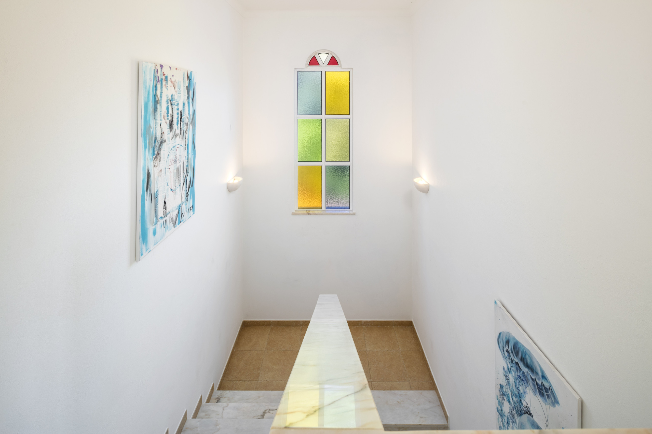 O piso superior oferece vistas parciais para o mar e é composto por mais duas suites (uma dupla e uma twin) com casas de banho privativas, um grande terraço com mobiliário de exterior e uma sala de estar com varanda.